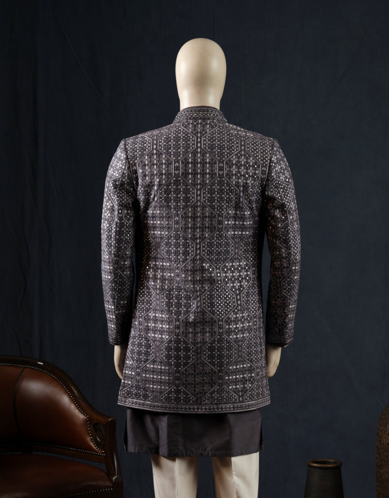 This black ensemble, complemented by a stylish jacket, exudes sophistication and contemporary charm.