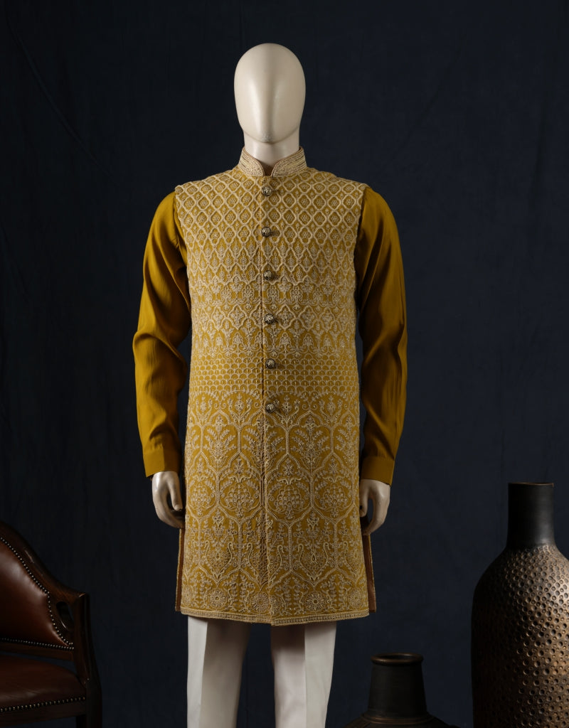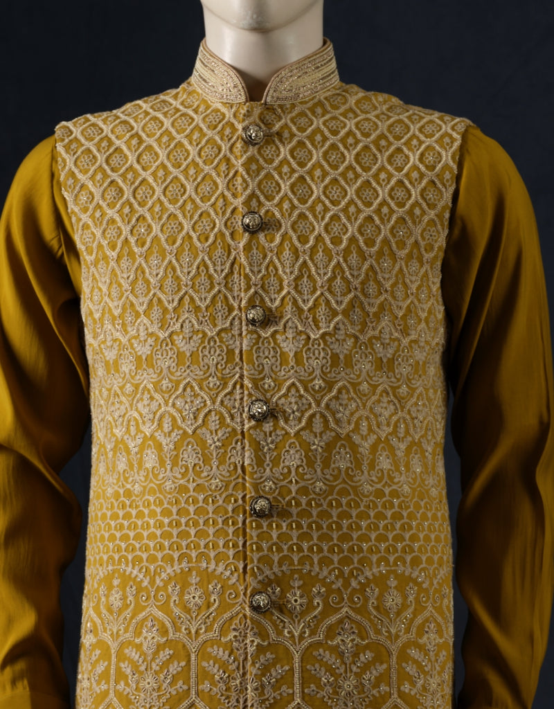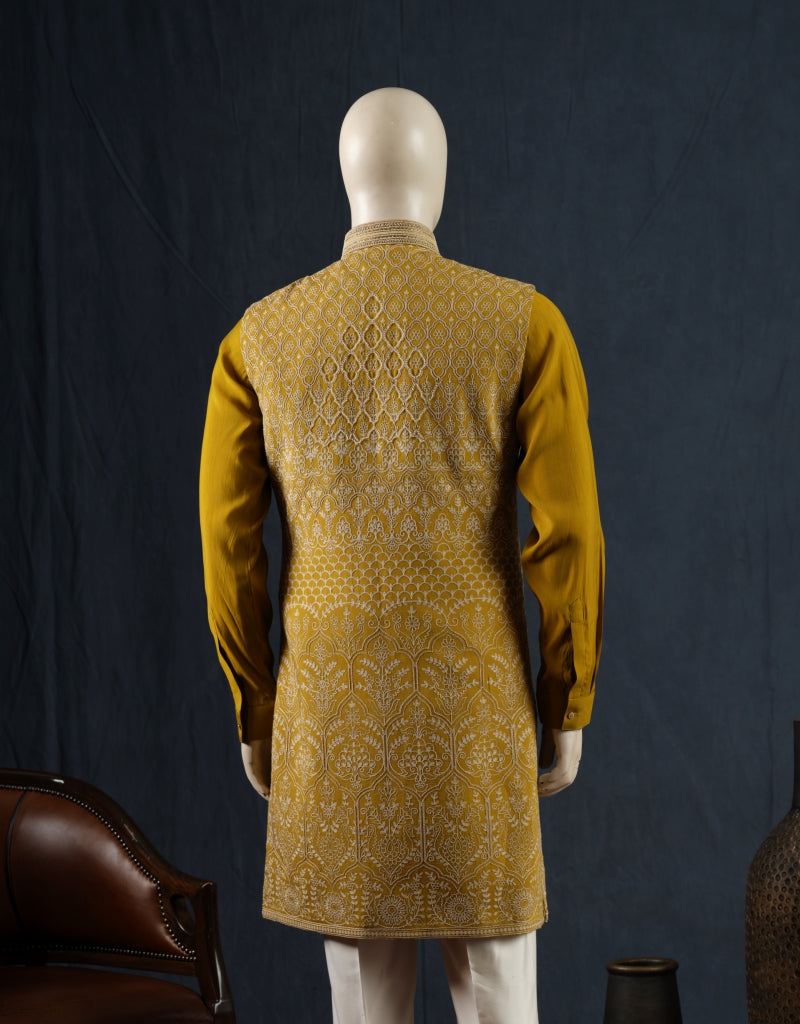 Featuring classic designs, this yellow kurta radiates warmth and timeless elegance.